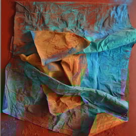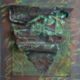 Textilobjekt / Papier / Text / Acryl auf Leinwand / 70 x 60